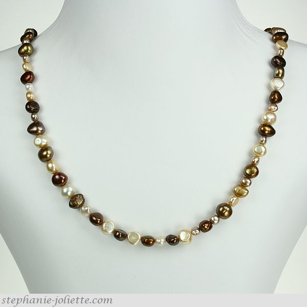 PEBE049-002KDB / Halskette, Süßwasser-Zuchtperlen-Bernstein-Mix, Länge (47 cm) / 49.- €uro